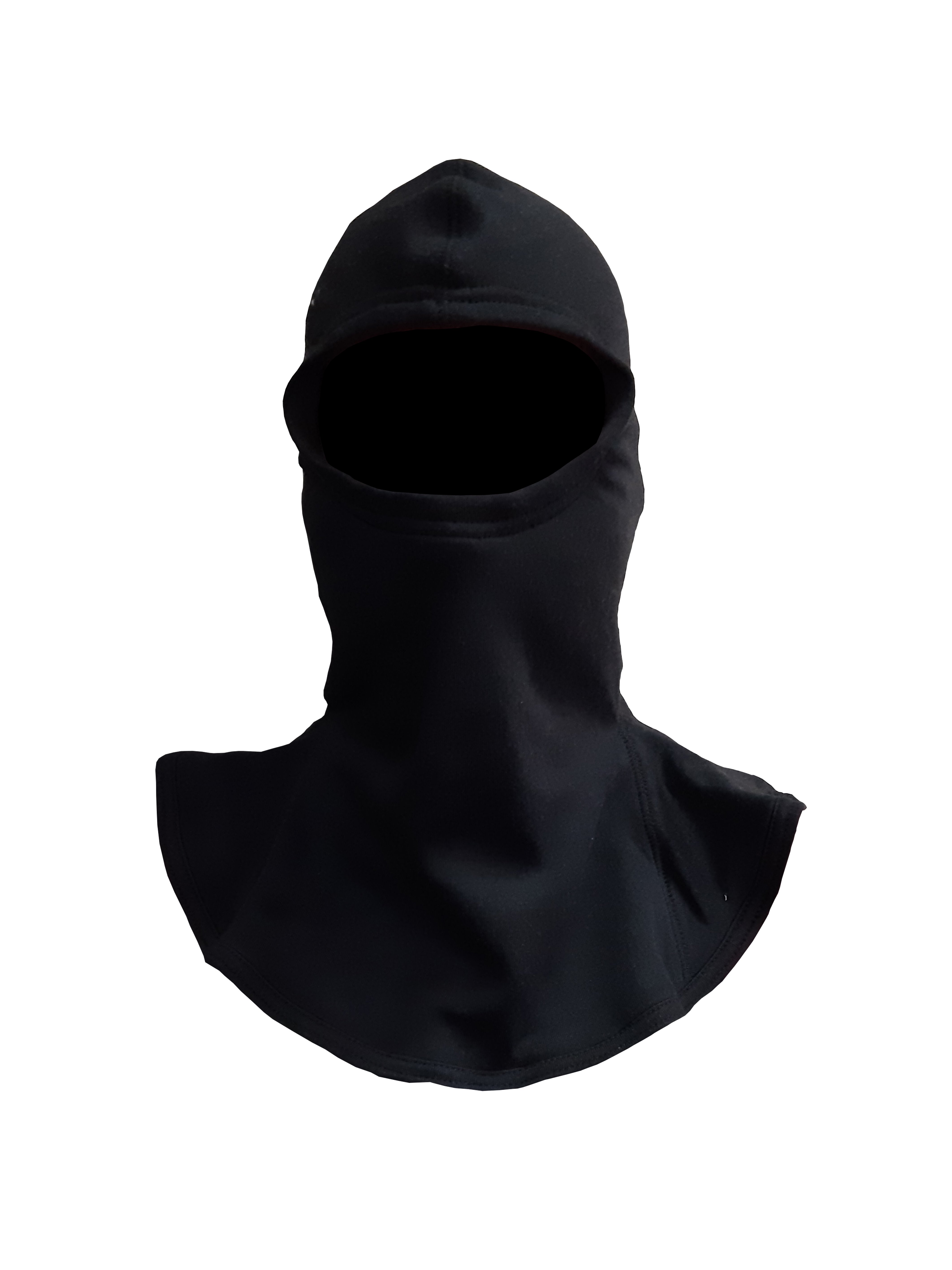 Capuz de malha meta aramida e fibra de carbono, duplo, alongado, com abertura facial, tamanho único.