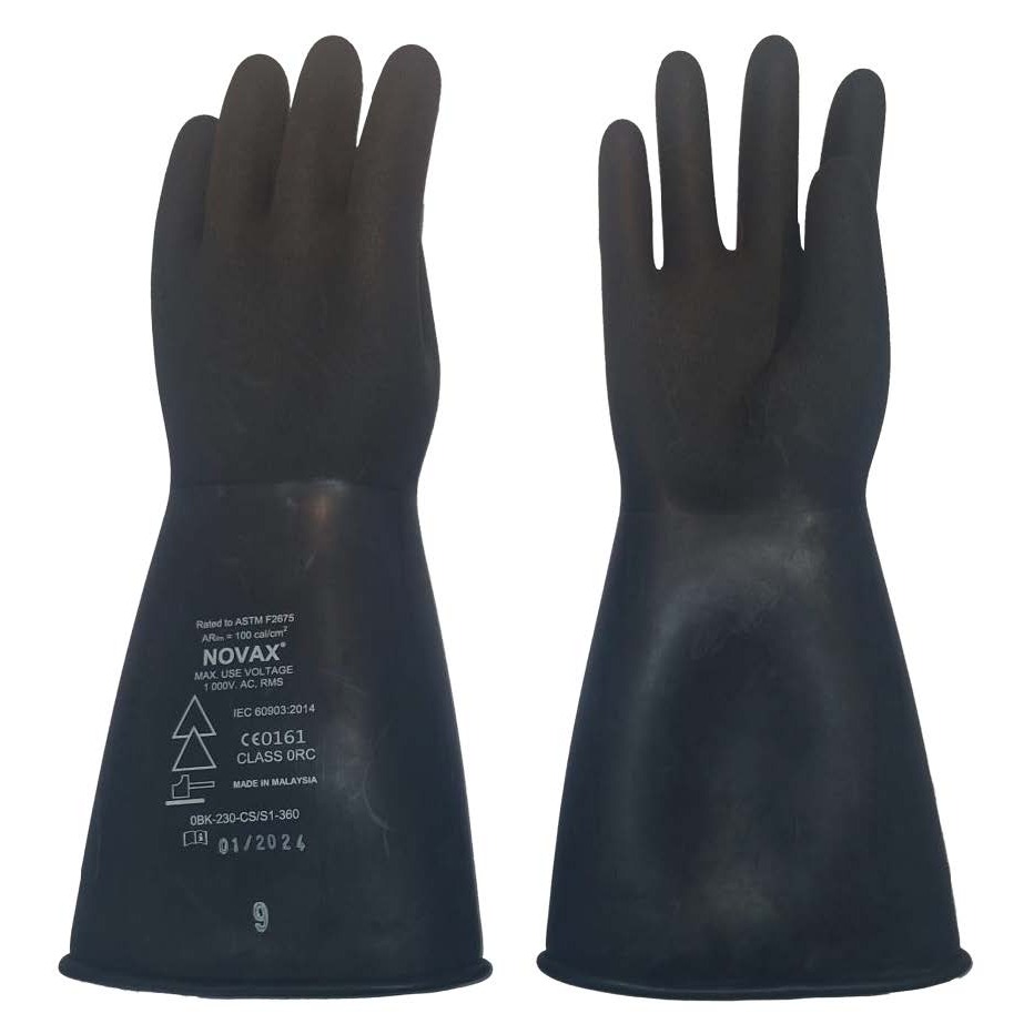 Luvas Isolantes de Borracha Natural, composta (composite). Categorias: A, H, Z, C; Classe 0. Comprimento: 14'. Tensão de uso 1000V.