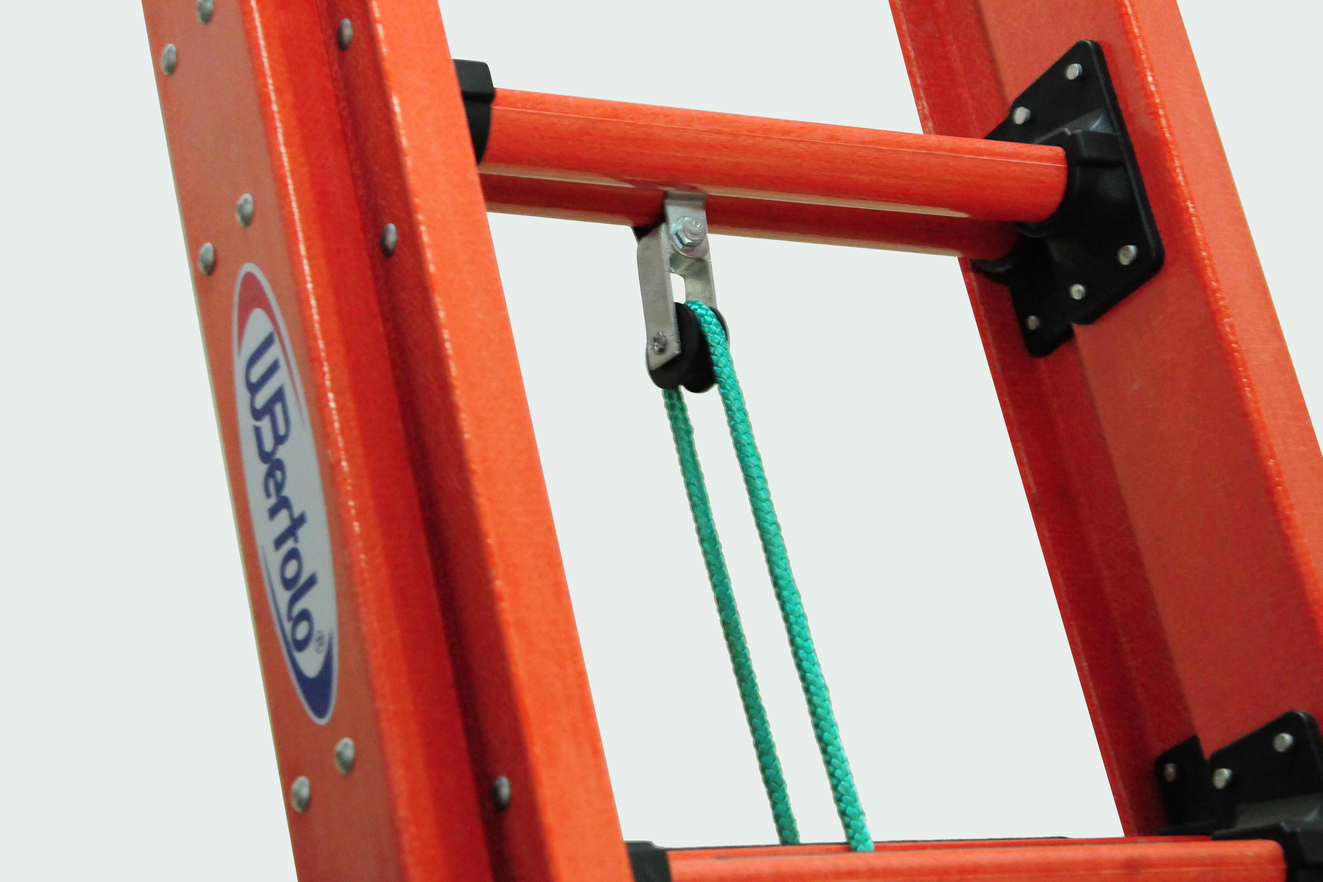 A parte extensível é içada por meio de uma corda de 8 mm travando a catraca nos degraus, assim regulando sua altura até o máximo permitido pelos limitadores.